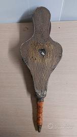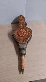 Soffietto per camino (forse marocchino) fatto a mano, antico , intarsio decorativo , soffiatore d'aria, strumento tradizionale per il focolare, arredamento rustico per la casa