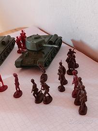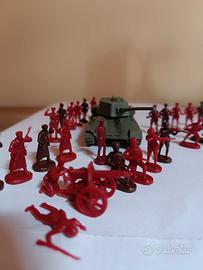 Lotto soldatini ATLANTIC SCALA HO, giocati (possono essere incompleti, rotti, colorati) in buono stato generale , composto da 2 TANK T34 + 32 PZ soldatini ARMATA ROSSA (bicolore). Tutto originale anni settanta.