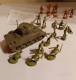 Lotto soldatini ATLANTIC scala HO, giocati (possono essere incompleti, rotti o colorati) in buono stato complessivo composto da un carro SCHERMAN + 12 US MARINES + 9 SENDAI. Tutto originale anni settanta.