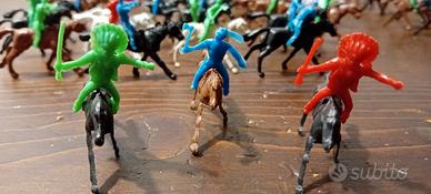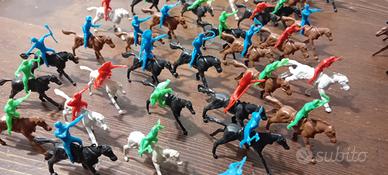 lotto di soldatini bavarelli anni 70,alti cm 4 :n.36 indiani, n.28 cowboy e n.8 cavalli