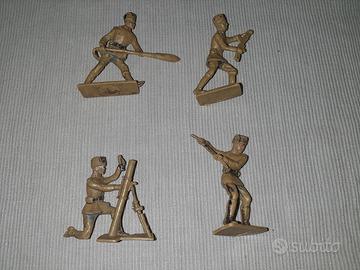 Quatto soldatini scala 1/32 marca Cherilea anni 1960/70 serie esercito russo Armata rossa. In buono stato, come nelle foto. Con tracce di vernice facilmente rimovibile.