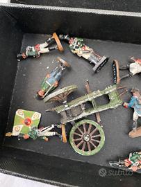 Soldatini di piombo vintage da collezione. Ottime condizioni; solo ad un pezzo si è scollata la ruota. Non vendo separatamente. Contattare per maggiori informazioni.