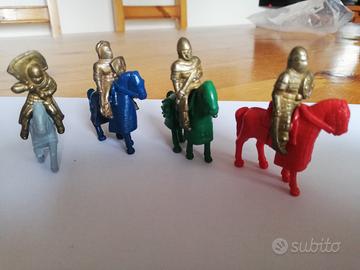 4 soldatini in ferro con relativi cavalli in plastica, collezione kinder Cavalieri del 97.