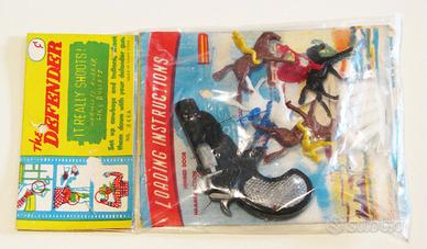 RARA BUSTA ORIGINALE HONG KONG vintage anni 70 con indiani / cowboys / mini pistola sparante con proiettili in plastica NUOVA - FONDO DI MAGAZZINO