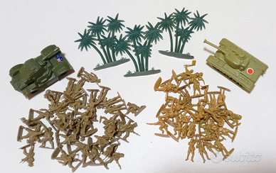 LOTTO di Soldatini originali HONG KONG con mezzi militari e accessori scala 1/72 VINTAGE ANNI 70 OTTIME CONDIZIONI