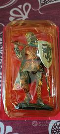 Soldatini in armatura De Agostini, dall'antichità classica al XIX secolo, più espositore in legno.