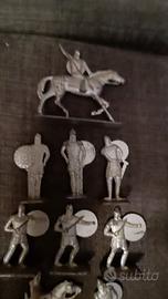 splendido lotto composto da 17 figurini in metallo in scala 1:32, di marca sconosciuta, rappresentante una scena di battaglia tra truppe crociate e truppe saracene.