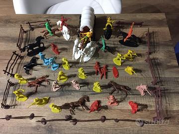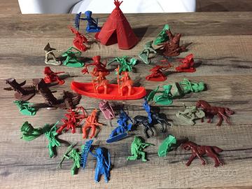 vari soldatini in plastica, militari, pirati, indiani e cowboy di vari colori con cavalli, tende, camion, carrarmati e aerei, alcuni di questi sono rovinati ritiro in loco - no spedizione