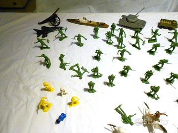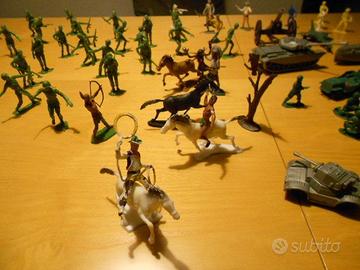 circa 80 pezzi vintage fra soldatini, indiani, cavalli, mezzi da guerra anni 80.