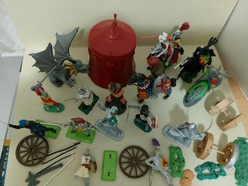 soldatini medievali 1/32 a piedi con basetta e a cavallo tutti in plastica un solo pezzo di metallo no box