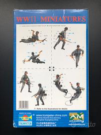 N.4 figurini in plastica da assemblare e dipingere, scala 1:35 Panzer Division Poland 1939, marca Trumpeter, ancora sigillati nelle buste. 4 pose plastiche diverse. Scatola con qualche segno di usura sugli angoli.