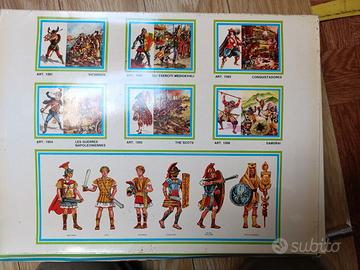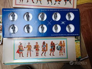 Soldatini in metallo altezza 35 mm, con scatola di imballaggio. 10 pezzi per scatola. Soggetti vari. € 10 a scatola.