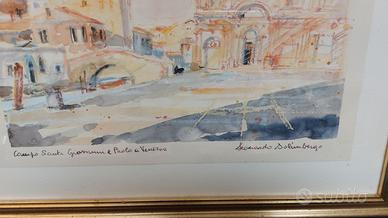 Opera di Solimbergo Leonardo (1945), acquerello e pastello con cornice dorata, raffigurante il "Campo Santi Giovanni e Paolo" a Venezia. Dimensioni cm. 32 x 26,5.