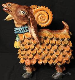 Scultura raffigurante un caprone realizzata dalla storica manifattura Ceramica Artistica Solimene di Vietri sul Mare.