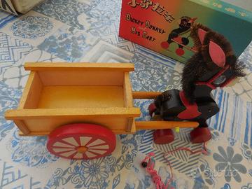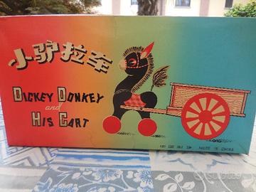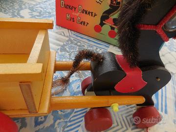 Somarello con carretto Dickey Donkey and his cart. Gioco vintage in legno anni 60 mai usato, con scatola originale (NOS).