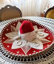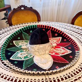Cappelli messicani con dettagli in corda bianca e interno in tessuto viola con relavivo poncho realizzati con materiale alta qualità. Prodotto artigianale messicano. Taglia unica. Prezzo tutti e due 90€.