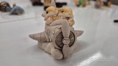 Bellissimi e teneri coniglietti in piccolo aeroplano biposto finemente realizzati e dipinti a mano in polvere di marmo del marchio prestigioso Artefice Ottanta, soggetto introvabile e originalissimo veramente stupendi, valore commerciale oltre 50,00 euro, vero affare!!! Svendo a solo 25,00 euro