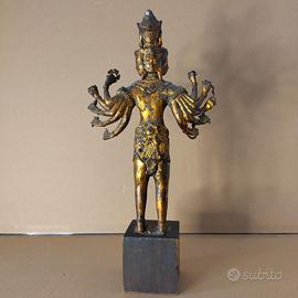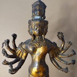 Buddha thailandese con 5 facce e 10 mani - scultura in bronzo dorato su base in legno - provenienza Bangkok, seconda metà XX secolo - altezza cm. 46