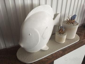 Pesce con 2 vasi in pietra levigata