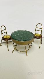 Set tavolo più sedie realizzati con materiale di recupero. Il tavolo é colorato con resina, trattato e lucidato