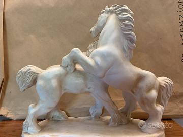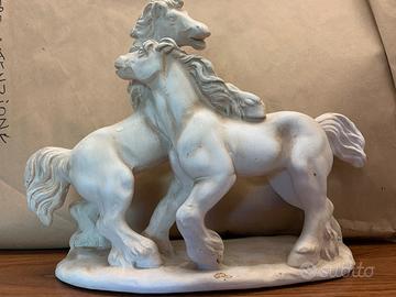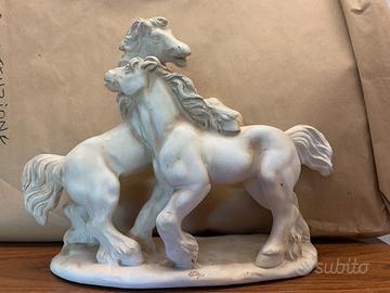 Splendida sopramobile in gesso di 2 cavalli. Dimensione circa 38cm x 32cm x 12cm. Peso circa 200gr.