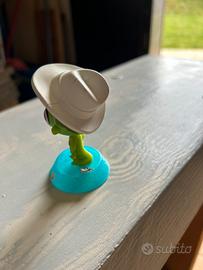 Personaggio Littlest Pet Shop da McDonald's che raffigura il geco Vinnie Terrio - Personaggio verde con cappello bianco. - Base blu con dettagli arancioni