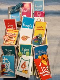 Sorpresiere Mulino Bianco con 24 scatole. Le scatole presentano scritte che indicano il gioco contenuto. La valigetta ha una delle chiusure rotte