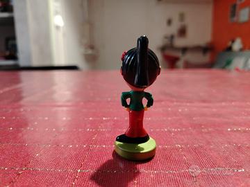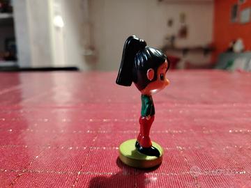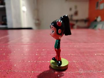Vendo sorpresina Kinder della serie "I Roteò", che raffigura un personaggio femminile con una vistosa acconciatura a coda di cavallo nera e un piccolo fiore rosso tra i capelli. La statuina indossa una maglia verde e pantaloni rossi, ed è fissata su una base circolare di colore verde chiaro che le conferisce stabilità. L'oggetto si presenta in buone condizioni estetiche complessive, con i colori vivaci e ben definiti. Questa sorpresina costituisce un pezzo interessante per collezionisti di gadget vintage Kinder e viene venduta esattamente come appare nelle immagini, priva della cartina illustrativa originale.