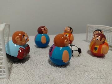Gioco completo di Kinder Maxi Sorpresa (Ferrero) Calciatori sempre in piedi (1992-1993). Inclusi 6 Calciatori, 2 porte e un Pallone. Si tratta di personaggi da collezione vintage prodotti da Kinder Sorpresa negli anni 90.