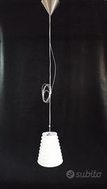 Lampada a sospensione LEUCOS MOD.TITAN S 23 con diffusore in vetro soffiato bianco con copertura di cristallo in forte spessore. Struttura in metallo nickel spazzolato.