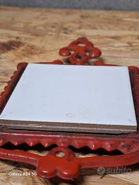 Sottopentola in ghisa lavorato con mattonella in ceramica. anni '60.Vintage