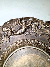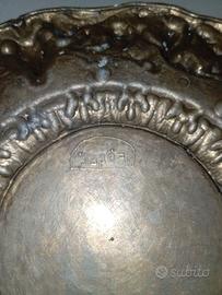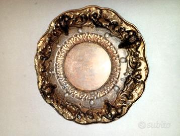 Sottovaso o sottobottiglia in metallo ramato con figure in rilievo. Diametro 23 cm Eventuale spedizione, + 12 Euro