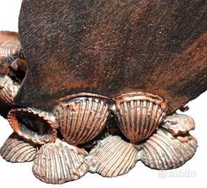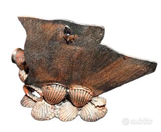 LAVORAZIONE ARTIGIANLE FATTA CON LEGNO E CONCHIGLIA DI MARE .