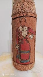 Bottiglia Mastino vintage,avvolta in un involucro di sughero con una figura tradizionale sarda decorata a mano.