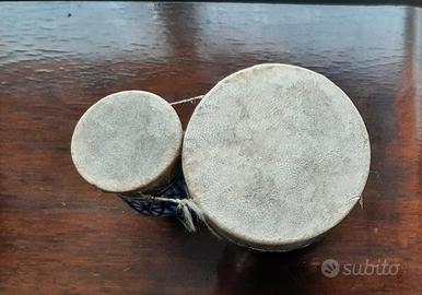 - Coppia di piccoli tamburelli con pelle. Cm 12x8