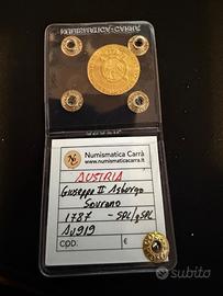Vendo Sovrano di Giuseppe II d’Austria, datato 1787, moneta in oro di grande interesse storico e collezionistico. Caratteristiche principali: •Nominale: Sovrano •Sovrano: Giuseppe II d’Austria •Anno: 1787 •Metallo: oro •Probabile zecca: Vienna Moneta molto interessante per collezionisti di: •monete austriache •oro storico europeo •monetazione di Giuseppe II •numismatica del Settecento Vendita come da foto. Disponibile per ulteriori immagini, dettagli e chiarimenti.