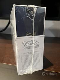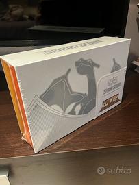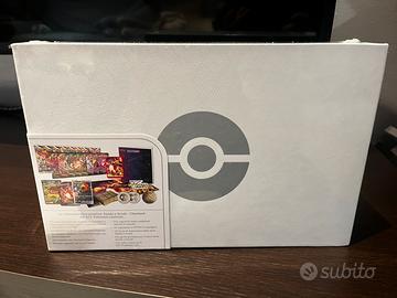 Box carte da collezione Pokémon - Spada e Scudo collezione ultra premium Charizard. Il Box contiene: - 3 carte promozionali olografiche; - tabellone da gioco; - 65 bustine protettive; - moneta da gioco; - 6 dadi segnalini in metallo; - 2 segnalini condizioni speciali; - 1 segnalino Vastro in plexiglas; - 16 bustine di espansione; - guida giocatore per Spada/Scudo; - carta codice per il GCC Pokémon live. Il tutto a tema Charizard!. Box ancora sigillato in perfette condizioni!
