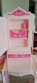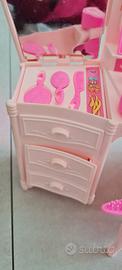 Vendo bellissima specchiera di Barbie Luce di stelle. in condizioni splendide. mancano solo una collana e due orecchini, tulle ancora con elastico in perfette condizioni, specchi novissimi ancora perfettamente riflettenti, e trucchi ancora nuovi con pennellino originale nuovo. scatola e istruzioni. vige la formula visto piaciuto. non si effettuano resi dopo la vendita.