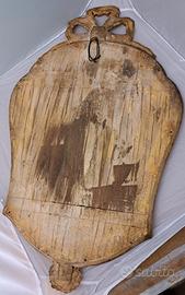 Specchiera dorata epoca 800 in legno dorato .Misure cm.84 altezza cm 51 larghezza. Schiena originale. specchio non coevo. Possibilità di elettrificazione .Porta candele in ferro battuto saldato a forgia profondità 27 cm. larghezza 36 cm.