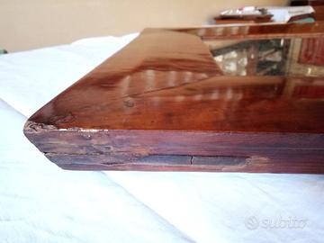 Leggermente bombato come da foto, così dall'origine. Rettangolare. Con segni di utilizzo, ma in buono stato, restaurato parecchi anni fa. Forse Decò, anni 20 – 30 del novecento.