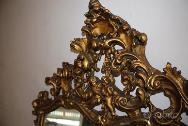 Specchio con cornice dorata in legno e lavorata
