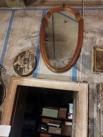 Specchio con cornice in legno massello,rara forma a scudo. Ottime condizioni. mis h,100 x 55 cm. Ritiro da parte dell' acquirente.