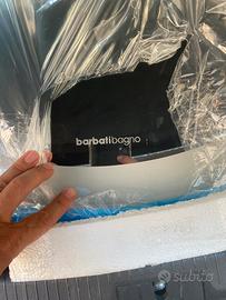 Ecco qui un bel specchio rotondo fatto in Italia credo che sia anche illuminato perché ci sono i fili elettrici è stato comperato pagato quasi 350 € mai mai usato è un cristallo speciale che non si appanna mai ed è un prodotto in Italia molto molto valido no Duravit no Ikea no ideal standard catalano hatria no ceramica Flaminia no azzurra no beta kartell fontana Arte il prodotto è nuovo