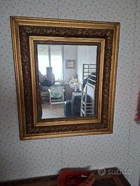 Specchio da parete vintage anni '50. In legno e stucco dorato. Disponibile spedizione privata. Misure: 68x78,3 cm.