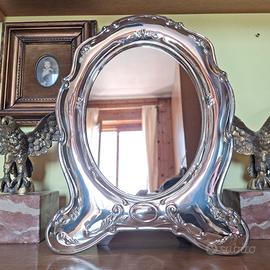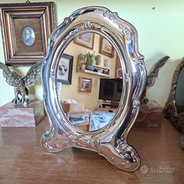 Specchio da tavolo in stile Liberty degli anni 80 in Argento 925 massiccio.