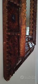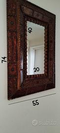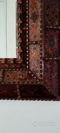 Splendido specchio davvero unico e realizzato a mano in Perùcon la tecnica del vetro retroverniciato. Misure: -Cornice esterna: 74 x 55 -Specchio centrale: 20x40 Pronto per essere appeso sia in orizzontale che in verticale