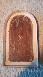 Specchio creato dal ceramista francese Francois Lambo, anni 1960/1970, in ceramica dorata con oro zecchino e smalti di color turchese e nero. Misure 35 x 21 cm e 3 cm di spessore