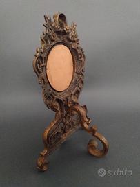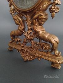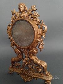 Specchio/Ostensorio, in metallo pesante dorato. misura 30 cm di altezza, 21 cm di larghezza e 13 cm di profondità. Pesa 1,315 Kg.