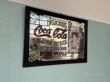 Specchio pubblicitario vintage della Coca-Cola con vetro incorniciato di grandi dimensioni.