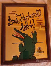 Vendo prezioso specchio pubblicitario originale della storica birra tedesca Lederer Bräu – Fürth, Bavaria.